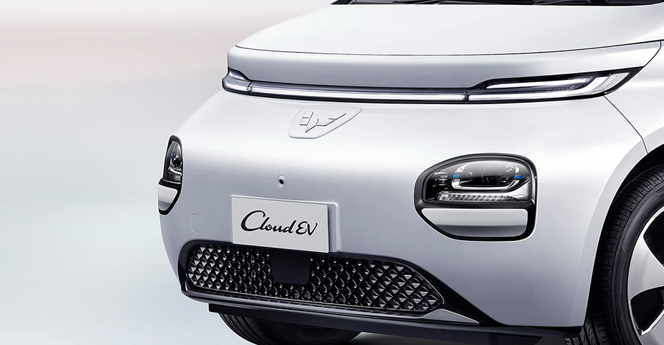 Pada bagian bodi samping Cloud EV terdapat lekukan halus, yang mana desain ini menonjolkan fitur lampu depan dan lampu belakang yang unik. Di sisi lain, tampilan ini juga mengedepankan perpaduan estetika teknologi yang minimalis.